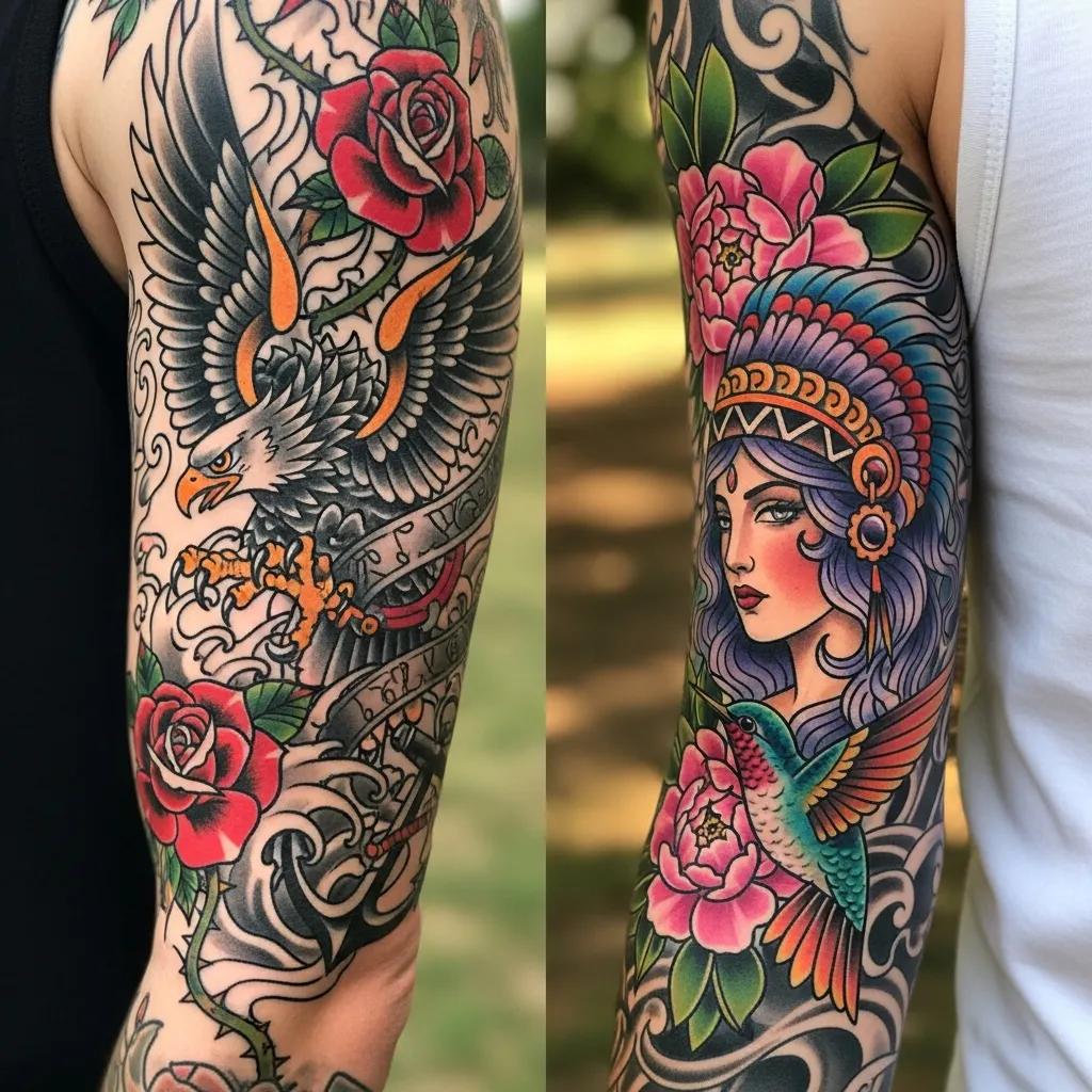 Traditional tattoos are characterized by their bold black outlines, vibrant colors, and iconic imagery, often drawing inspiration from maritime and military themes. These designs typically feature elements such as roses, skulls, and eagles, which convey deep meanings and cultural significance. In contrast, neo-traditional tattoos build upon these foundations by incorporating more intricate details, a broader color palette, and modern artistic influences. This evolution allows for greater expression and personalization, making neo-traditional tattoos a popular choice among contemporary clients.